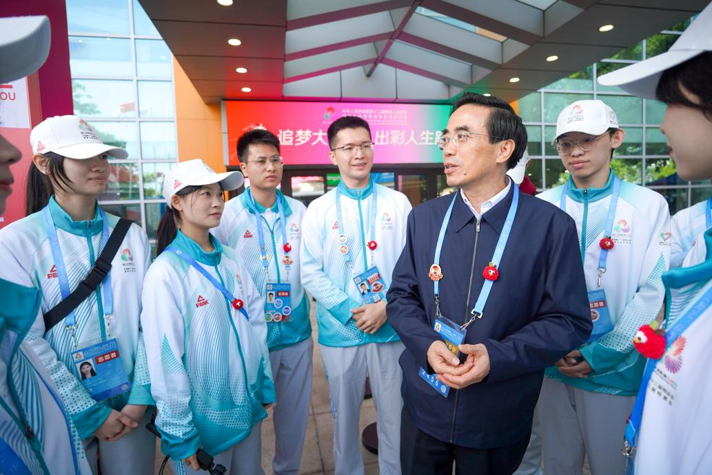 12月8日上午,中国残疾人联合会主席程凯一行莅临赛事现场,视察时关切问候在岗的志愿者们,了解志愿者的工作岗位与内容,同时勉励全体志愿者在志愿服务中传承民族团结精神,彰显青年担当。