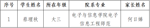 根据《关于开展2025“中国大学生自强之星”公益活动的通知》相关要求,通过学生本人自愿申请,经相关部门审核,我校拟推荐以下1名候选人参加“中国大学生自强之星”公益活动个人项目评选。现将名单公示如下: