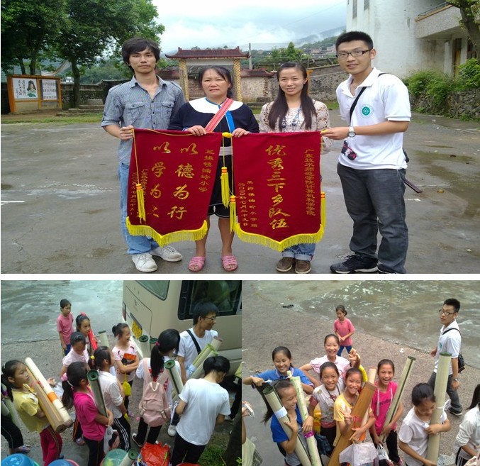 短短的十一天相处,他们与学生们建立了深厚的情谊。离别,总是伤感的,可是这群懂事的小朋友们坚强的忍着,笑着帮他们搬运行李上车。所有人都忙着合影,聊天,珍惜这最后相处的时刻。挥手说再见,他们在车上看到几个小女生已经哭着躲到宣传板后面不让我们看见。这一刻,所有的队员们心里都是酸酸的。他们用真诚换来了孩子们的信赖,真心祝愿小朋友们能够健康快乐地成长。