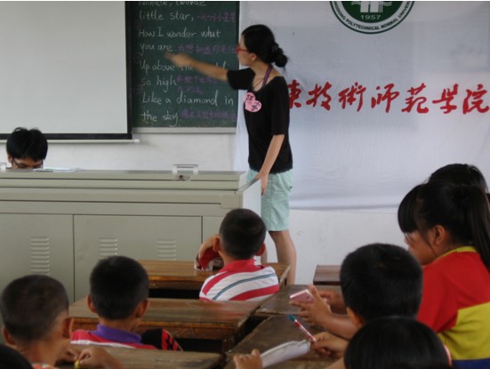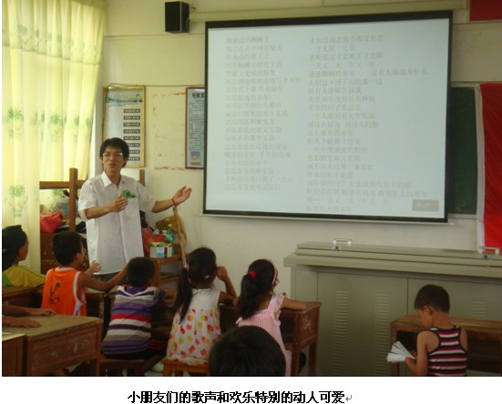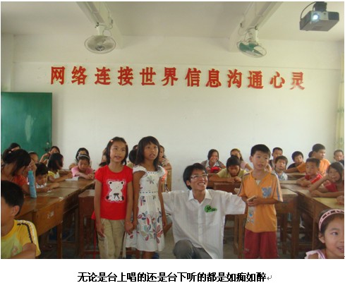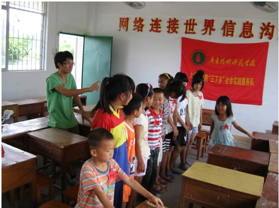 7月15日,根据计划,三下乡团队根据到场学生的需要,将小朋友们分成4个班,分别有美术班,诗歌朗诵班,篮球班,还有英文音乐班。在团队成员的带领下,音乐课室里,歌声满天飞扬了!