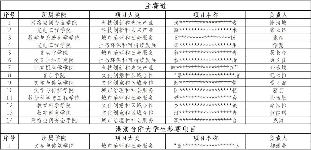 第十五届“挑战杯”广东大学生创业计划竞赛遴选项目名单