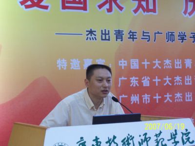 由校团委、校学生会主办的“爱国求知 历练成长——杰出青年与广师学子分享成长经验”活动6月19日举行。活动邀请荣获第17届“中国十大杰出青年”、第8届“广东省青年五四奖章”获得者、广州市公安局出入境管理处侦查科教导员庞波;第6届“广东省青年五四奖章”获得者、南方日报社要闻编辑中心执行主任黄灿;首届广州市十大杰出青年获得者、我校民族学院院长郭小东教授,与广大学生共聚一堂,与同学们分享杰青们的成长经历和成才经验。校党委书记邝邦洪、副书记罗海鸥出席了本次活动。