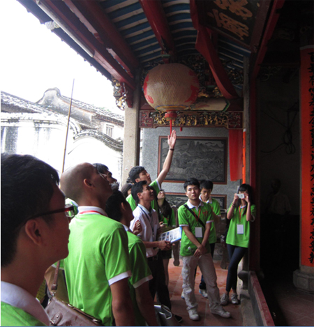 一下车,我们遇见了守城的老人,朴素的衣着与古城相互映衬,使我们的敬仰之情油然而生。他守住的不仅仅是石城,更是一种寂寞,一种城市里的人已经丢失了的精神气质。经过了解,我们得知,石寨又名石城,现只有黄氏居住,人口八千多人,操闽南方言。我们在校长的带领下,我们对石寨村的地形进行了进一步的观察。群山怀抱,方圆十里的平地突起了一座山岗,在山岗上建起了石寨。在石寨面前,便有一湖,湖水清澈,不时有白鹭从水上掠过。凭城远眺,峰峦耸翠。城内古建筑弥漫着中国文化的气息,黄氏庙堂的故事传说为这个古色古香的石城蒙上了神秘的色彩。