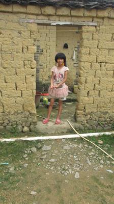 黄色的砖瓦,简陋的堆积,灰暗的屋落,低矮的墙,这些简单,组成了她居住的符号。当我们走到她家附近的时候,同行的孩子们告诉我,她躲进屋子里面锁了门不让我们进去,旁边站着她的母亲,30来岁,背着一个2、3岁的小孩。后来她妈妈叫她开门,她开了门就不知道躲在哪里去了。我们没有去找,我们等着她自己出来跟我们见面聊天。