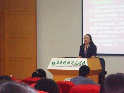 回老师以一份调查报告开场,向大家展示了在不同时期内人们在读书中的不同态度。随后她从世界读书日由来的美丽传说谈起,带领大家经历了一次奇妙的文化之旅。讲座中,她分别介绍了中外各国对读书日的态度,并紧紧抓住人都有好奇心的特性,从“奇”入手,介绍了当今世界上被人称奇的图书,为师生讲述了图书当中鲜为人知的秘密,让大家大开了眼界。最后,她引用著名作家歌德的话“经验丰富的人读书用两只眼睛,一只眼睛看到纸面上的话,另一只眼睛看到纸的背面”和自己的心得来激励大家:既要勤于读书,更要读出书背后的意义。