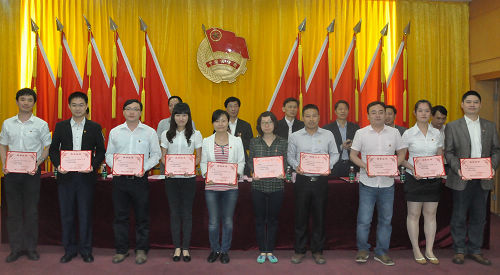 会上,共有6个团总支、45个团支部、10名优秀共青团干部、10名优秀共青团员标兵、419名优秀共青团员、329名优秀学生(团)干部、223名学生工作积极分子、19名艺术团文体积极分子、10个优秀学生社团、10个优秀学生社团活动、24 名优秀学生社团干部以及110名“广东技术师范学院55周年校庆优秀志愿者”受到了表彰。詹步强及各部门负责同志为受表彰的先进集体和先进个人颁奖。