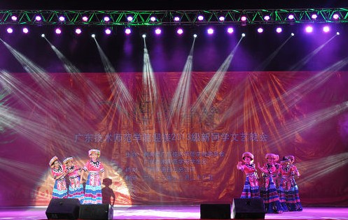 晚会以一曲活力动感的开场舞《青春,舞起来》拉开帷幕。学院学生艺术团分别给师生们上演了青春气息浓厚和民族风格独特的女声表演唱《山寨素描》、男子群舞《牛角舞》等优秀剧目;院系风采展示节目深得观众喜爱,值得回味的是,由经济与贸易学院带来的光影戏《光影话广师》,以光、影、声相结合的方式呈现了白云校区的历史、变化、发展和师生们的日常生活,给观众们留下了极为深刻的印象,鼓舞着全体广师人奋发向上,朝着广东技术师范大学的目标而奋斗;新疆培养班学员送上了具有西域风情的舞蹈,他们还走下舞台,与现场观众起舞同欢;最后由我院共青团干部和学生代表带来的歌舞《梦想的舞台》,师生同台诠释梦想的力量,极具感染力。整台晚会歌声飞扬、乐声萦绕、舞姿翩跹、创意不断、特色鲜明、精彩纷呈,台上倾情演出,台下热情呼应,鼓舞着广师学子执着追梦、圆梦青春的决心。