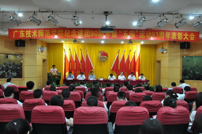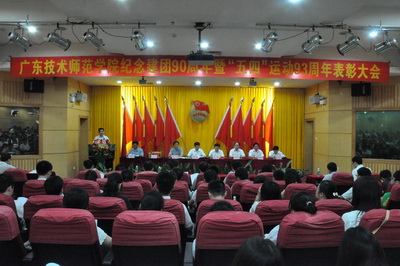 学院团委书记伍思文在大会上致辞。他首先代表学院团委向出席大会的各位领导表示衷心的感谢,向长期以来重视关心共青团和青年工作的各级党政领导、各有关部门致以崇高的敬意,向全院团员青年致以节日的问候。他说,这些年来,学院团委在团省委和院党委的正确领导下,高举中国特色社会主义伟大旗帜,坚持以马克思列宁主义、毛泽东思想、邓小平理论和“三个代表”重要思想为指导,积极落实科学发展观,大力继承和弘扬五四精神,认真抓好“以德为行,以学为上”主题教育活动,积极营造“校以育人为本,师以严教为业,生以成才为志”的优良校风,努力促进青年学生的成长成才。通过培育大学生科技学术节、校园文化艺术节、学生社团活动月、周末讲座、青年志愿服务、青马工程和福彩公益活动等品牌项目,有效地为广大青年学生搭建了施展才华、奉献青春的广阔舞台,在团员青年思想政治教育、校园文化艺术、“挑战杯”竞赛、青年志愿服务、社会实践工作和省级评优表彰中,我院均取得了突破性的好成绩。实践表明,有着光荣传统的广东技术师范学院青年,是堪当重任的合格建设者和可靠接班人。致辞中,他号召广大团员青年要从四个方面继承和弘扬“五四”精神:一是要“以德为行”,从坚定理想信念做起;二是要“以学为上”,从发奋学习成才做起;三是要敢为人先,从矢志创新创业做起;四是要脚踏实地,从弘扬校园新风做起。