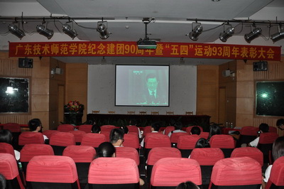 表彰大会结束后,学院团委组织与会团员青年观看了现场直播的中央庆祝中国共产主义青年团成立90周年大会,之后又组织观看了纪录片《“东园启航”纪念“团一大”在广州召开90周年》。