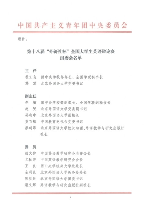 附件:第十八届“外研社杯”全国大学生英语辩论赛组委会名单