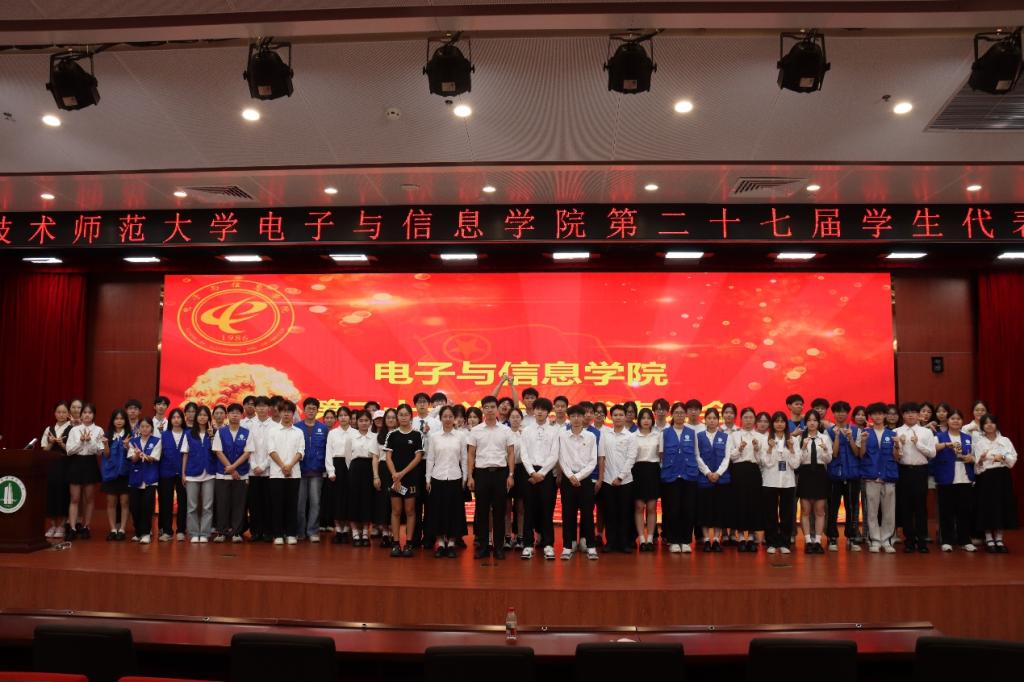 2025 年 6 月 17 日,电子与信息学院第二十七次学生代表大会在图书馆113报告厅隆重召开。学院党委副书记梁茵、团委书记兼辅导员谢仲玄、辅导员吴镇洋,校学生会主席赖漫漫出席了本次大会。同时,校团委、校学生会以及各兄弟学院团委、学生会的代表们也受邀参加,与我院学生代表一同见证了这一重要时刻。